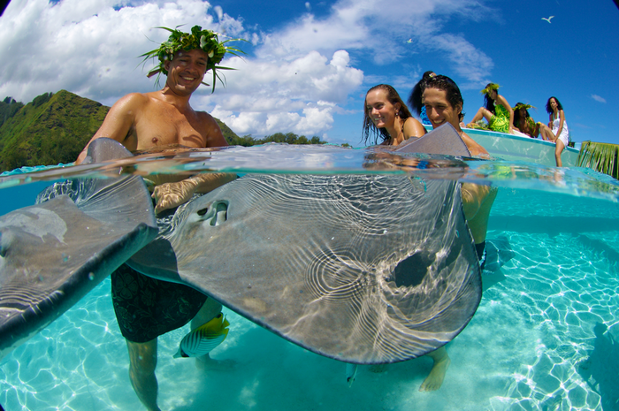 “ L’île soeur” est en forme de coeur et couronnée par un massif montagneux aux pointes volcaniques acérées. Calme et fleurie elle est souvent choisie comme première étape dans la découverte de l'archipel. Son littoral nord face à un lagon sublime, abrite les principaux hôtels. La traversée en bateau depuis Tahiti est conseillée. La lente approche impose une découverte du magnifique relief de l’île et ses célèbres baies, tel de véritables explorateurs. Découvrez ensuite le littoral à vélo, en scooter ou à bord des trucks locaux. Les amateurs de randonnées apprécieront l’intérieur de Moorea pour ses montagnes et ses plantations. Les plongeurs seront conquis par la diversité des sites et les rencontres avec les requins.
