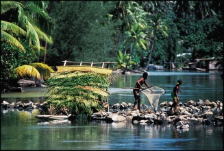 Baptisée “Hermosa, la belle”, par les explorateurs espagnols, cette île se présente sous la forme d’une île double dont les 2 parties sont séparées par un chenal. Huahine incarne plus que toutes autres îles, la Polynésie d’autrefois. Le village de Maeva est remarquable avec ces maisons sur pilotis et ses parcs à poissons, savants assemblages de pierres qui sont autant de pièges pour les poissons. La route circulaire qui fait le tour de l’île offre de sublimes panoramas sur le lagon et traversent de nombreux petits villages.